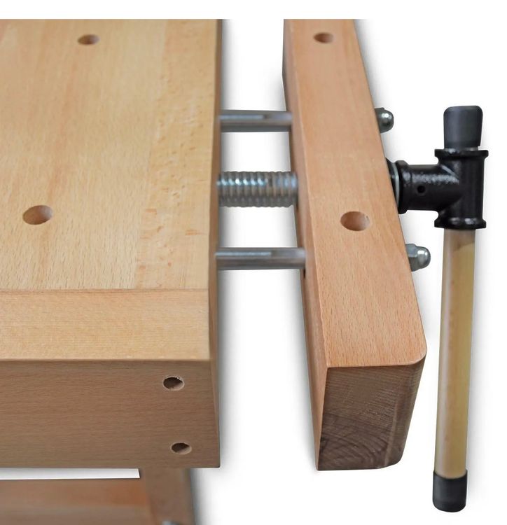 Die BAMATOHobelbank WORK-1945 ist mit einer massiven Arbeitsplatte aus Buchenholz sowie 2 Spannzangen mit Doppelsäulenführung ausgestattet. Diestabile Rahmenkonstruktion, welche ebenfalls aus Buchenholzgefertig ist, sorgt für einen perfekten und sicheren Stand. Mit einem Gewicht von 120 kg ist auch eine Bearbeitung von großen Werkstücken kein Problem. Der Einbauschrank aus Gummibaum, besteht aus3 Schubladen mit Vollauszug sowie 4 Türen mit Softclose Scharnierenund sorgt für jede Menge Stauraum.