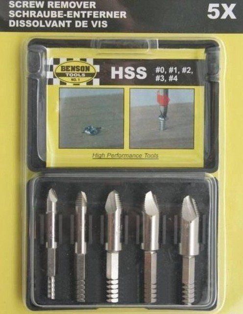 5 teiliges Schraubenentferner Set .. zum schnäppchen-preisvon nur Fr. 4.90 .. Diese praktischen Werkzeuge eignen sich besonders zum einfachen entfernen beschädigter und überdrehter Schrauben aller Grössen und Arten. Diese passen auf alle Bohrer. .. Merkmale: 5 Stück Werkstoff HSS4241 Inklusive Aufbewahrungsbox Entfernt Schrauben, ohne die umgebende Oberfläche zu beschädigen .. Inhalt des Sets: Schraubenausdreher Nr. 0: bis 6 mm Schraubenausdreher Nr. 1: ca. 6 mm Schraubenausdreher Nr. 2: ca. 10 mm Schraubenausdreher Nr. 3: ca. 12 mm Schraubenausdreher Nr. 4: ca. 14 mm Inkl. Aufbewahrungsbox .. Falls Sie mehrere Sets / Artikel kaufen wollen, fragen Sie bitte nach den Transportkosten Versandkosten von Ricardo angezeigt sind nicht bindend .. NEU und Original verpackt SOFORT lieferbar! Versand erfolgt umgehend nach Zahlungseingang
