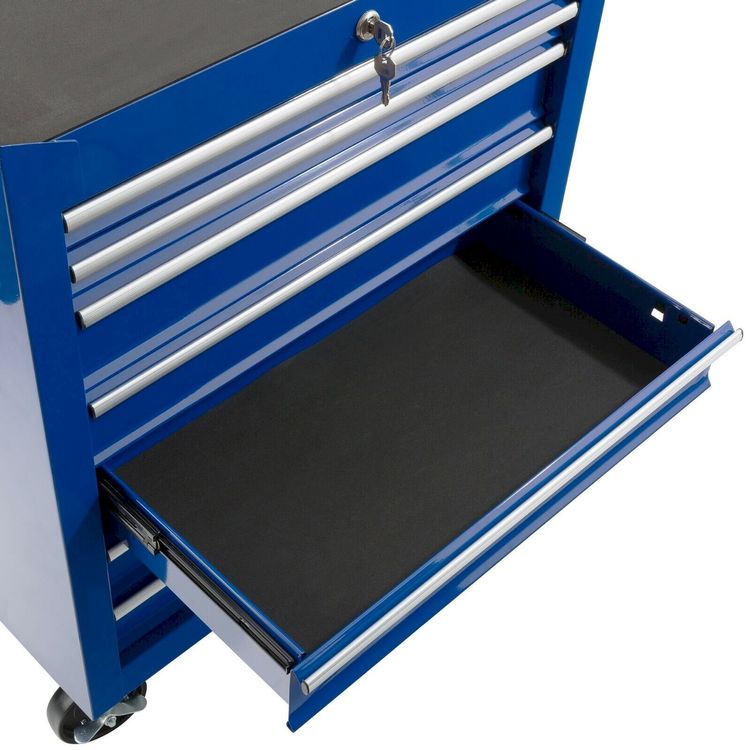 Arebos chariot à outils 7 compartiments verrouillables bleu Voulez-vous que votre atelier soit ordonné et soigné ? Alors ce Chariot à outils dAREBOS est fait pour vous ! Cest le complément parfait à tous les ateliers dartisans, ateliers de réparation automobile ou même à votre atelier de loisirs. Le chariot datelier AREBOS est fabriqué en acier robuste. Les tiroirs extractibles vous permettent de trier vos outils de manière optimale. Les tiroirs sont montés sur roulement à billes et souvrent et se ferment donc avec douceur. Ils disposent dune fonction de verrouillage pour empêcher louverture automatique. Les inserts antidérapants gardent les outils bien rangés et soignés. Spécifications Contenu de la livraison