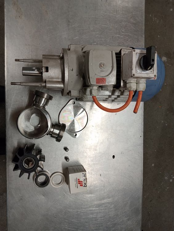 Gebrauchte Johnson Impeller Pumpe, Typ. FIP40SI/SH. Inox Ausführung für Lebensmittel, Anschlüsse DN 25 Milchrohrverschraubung, Wurde seltengebraucht, Mechanisch guter Zustand.Elektrisch nicht geprüft, muss verkabelt werden. +Ersatz Gleitringdichtung Ohne Garantie, keine Nachverhandlung,muss abgeholt werden.