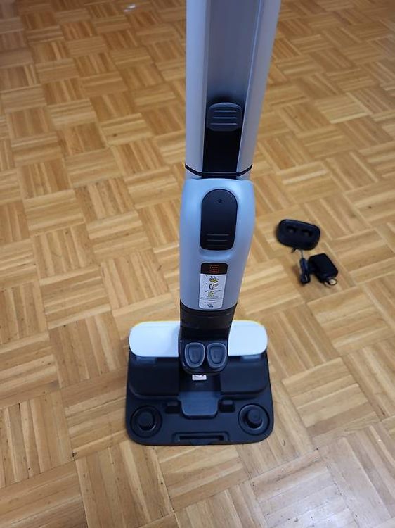 DESCRIPTION PRISE SUR LE SITE DE KARCHER RETRAIT EN MAIN PROPRE Vendu sans le produit Avec le nettoyeur de sols FC 4-4, vous navez plus besoin daspirer avant de laver le sol : il élimine les impuretés sèches et humides du quotidien en un seul passage. Grâce à un maximum de trente minutes dautonomie de la batterie par charge, il est facile de nettoyer des surfaces jusquà 90 mètres carrés. Le chargeur rapide Duo inclus permet une recharge en seulement soixante-dix minutes. Un signal visuel avertit lutilisateur lorsquil doit faire lappoint du réservoir deau propre et vider le réservoir deau sale. Après lactivation de lappareil, les deux rouleaux sont automatiquement humidifiés par leau du réservoir deau propre. La quantité deau peut être ajustée en fonction du revêtement de sol à |aide des 2 modes de nettoyage. Le FC 4-4 nettoie même les endroits difficiles daccès et ramasse aisément les cheveux. Tout contact direct avec la saleté est évité grâce au réservoir deau sale intégré et hygiénique; ce dernier peut être retiré et nettoyé après lutilisation de lappareil. Le FC 4-4 tient debout tout seul et permet un rangement peu encombrant grâce à sa poignée amovible. Cet appareil est adapté à tous les sols durs. Les batteries interchangeables Kärcher Battery Power 4 V sont compatibles avec tous les appareils Kärcher Battery Power