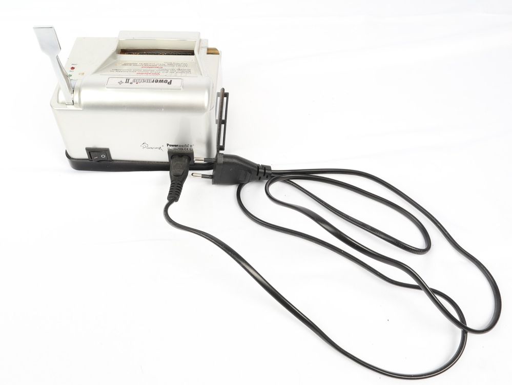 Die Elektrische Zigarettenstopfmaschine ist im Moment wohl die beste halbautomatische Zigarettenstopfmaschine. Innerhalb weniger Minuten ist eine komplette Schachtel Zigaretten gestopft. Sie werden begeistert sein, weil es super funktioniert, man sich ca. 50-60 % an Kosten einspart. Es ist für Einsteiger und Profis geeignet. Marke: Powermatic 2 Masse (L x B x H): 14 x 10 x 8 cm Gewicht: ca. 1 kg Spannung: 100-240V Frequenz: 50-60 Hz Leistung: 25 W Zubehör: Reinigungsbürste, Pinsel und Stift zum Entfernen von Tabakresten Zustand: Die Zigarettenmaschine wurde gebraucht. Sie konnte nicht getestet werden. Abholung nur auf Voranmeldung möglich. Versand innerhalb der Schweiz. Öffnungszeiten: Montag - Donnerstag von 08:30h - 12:00h und 13:30h - 16:30h. Freitag von 08:30h - 12:00h und 13:30h - 15:00h.