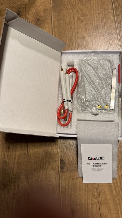 Macaron 2 Tragbare Punktschweißmaschine – Generation 2 Zum Verkauf steht eine Macaron 2 Punktschweißmaschine von QianLi in neuwertigem Zustand. Ideal für Reparaturarbeiten und zum präzisen Schweißen von Nickelstreifen, Batterien und anderen Materialien. Merkmale: • 6 Leistungsstufen: Präzise Anpassung für verschiedene Anwendungen • Erweiterte Schweißkabel: Flexibilität und einfache Bedienung • Kupferspitzen: Langlebig und effizient • Temperaturschutz: Sicherheit bei längerem Einsatz • USB Typ-C Schnellladefunktion: Praktisch und modern • Integrierte Powerbank-Funktion: Kann auch als Stromquelle verwendet werden Technische Details: • Eingang: 5V/2A (USB Typ-C) • Ausgangsspannung: 4,2V (maximal) • Ausgangsstrom: 650A (maximal) • Unterstützte Nickelstreifenstärke: 0,1-0,12 mm Die Maschine ist kompakt, leicht und ideal für den Einsatz zu Hause, in der Werkstatt oder unterwegs. Perfekt für Elektronikreparaturen, Akkupacks und andere DIY-Projekte. Lieferumfang: • Macaron 2 Schweißgerät • Schweißkabel mit Kupferspitzen • Bedienungsanleitung