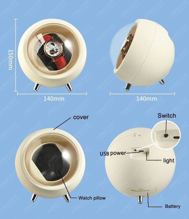 laufruhiger Uhrenbeweger Alle Artikel die ich verkaufe, sind bei mir am Lager und werden nach dem Zahlungseingang sofort verschickt! Uhrenbeweger mit USB- und Batteriebetrieb Dieser formschöne und dekorative Uhrenbeweger kann mit dem mitgelieferten USB Kabel oder mit einer AA Batterie (nicht im Lieferumfang) betrieben werden. Schliessen Sie das USB Kabel an Ihren PC, Laptop, an das Ladegerät von Ihrem Mobiltelefon oder an jede andere USB Quelle an. Dank dem ultraleisen Motor kann der Uhrenbeweger überall verwendet werden. Er ist nicht nur ein äusserstdekorativesElement, sondern hält auch Ihre Automatikuhr in Gang. Dank den2 verschiedenen Modiist er praktisch für alle Automatik-Uhren geeignet. Die folgenden Betriebsarten stehen zur Verfügung: Um den Modus zu wechseln einfach die entsprechende Taste nochmals drücken. Das blaue Licht leuchtet schwach bei Modus 1 und stark bei Modus 2. Durch dauerhaftes Drücken von etwa 3 Sekunden wird der Uhrenbeweger ausgeschaltet. Geliefert wird der Uhrendreher in der Originalverpackung mit USB Kabel und Bedienungsanleitung. (englisch) Den Uhrenbeweger gibt es in weiss oder grün. Sie bieten hier auf das weisse Modell! Holen Sie sich hier diesen dekorativen Uhrenbeweger - zumpreisparadiesischenSuperpreis! Schauen Sie sich meine anderen Auktionen an. Nach Abschluss der Auktion erhalten Sie von mir eine E-Mail mit dem fälligen Betrag und allen Zahlungsmöglichkeiten (inklusive TWINT und PAYPAL) Beachten Sie bitte: